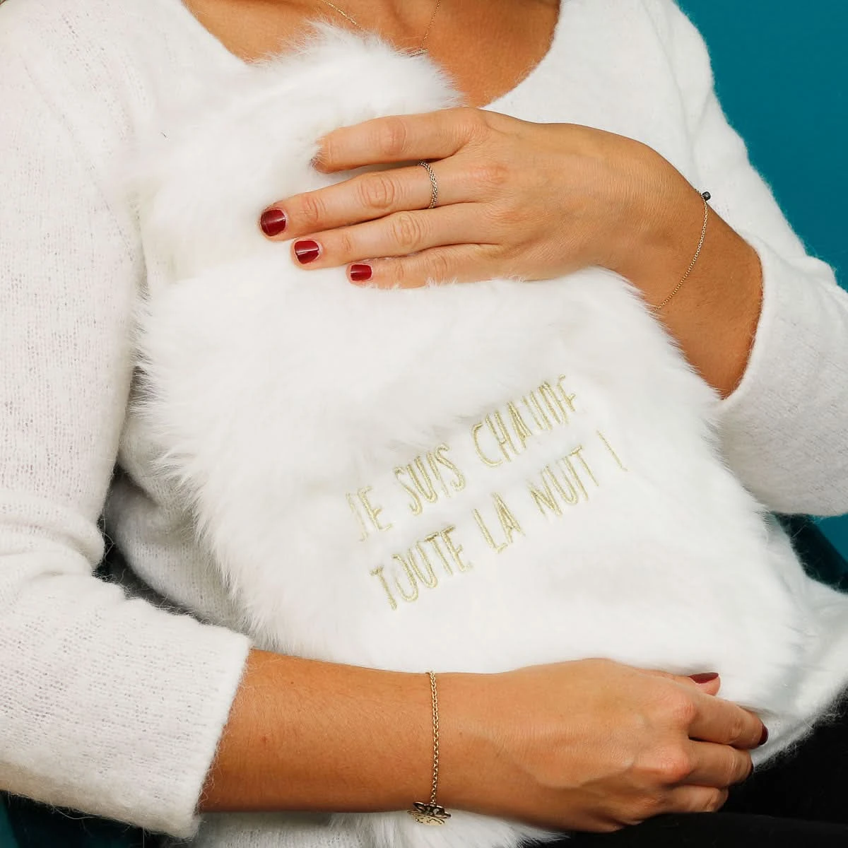Quand l’hiver pointe le bout de son nez, vous n’avez qu’une envie : vous réchauffer. Cette bouillotte Je suis chaude fait parfaitement bien son travail, puisqu’elle garde la chaleur pendant très longtemps. Sur le canapé devant la télé, ou bien au lit sous la couette, vous ne la quittez pas des bras. Son truc en plus ? Sa matière toute douce tellement réconfortante.