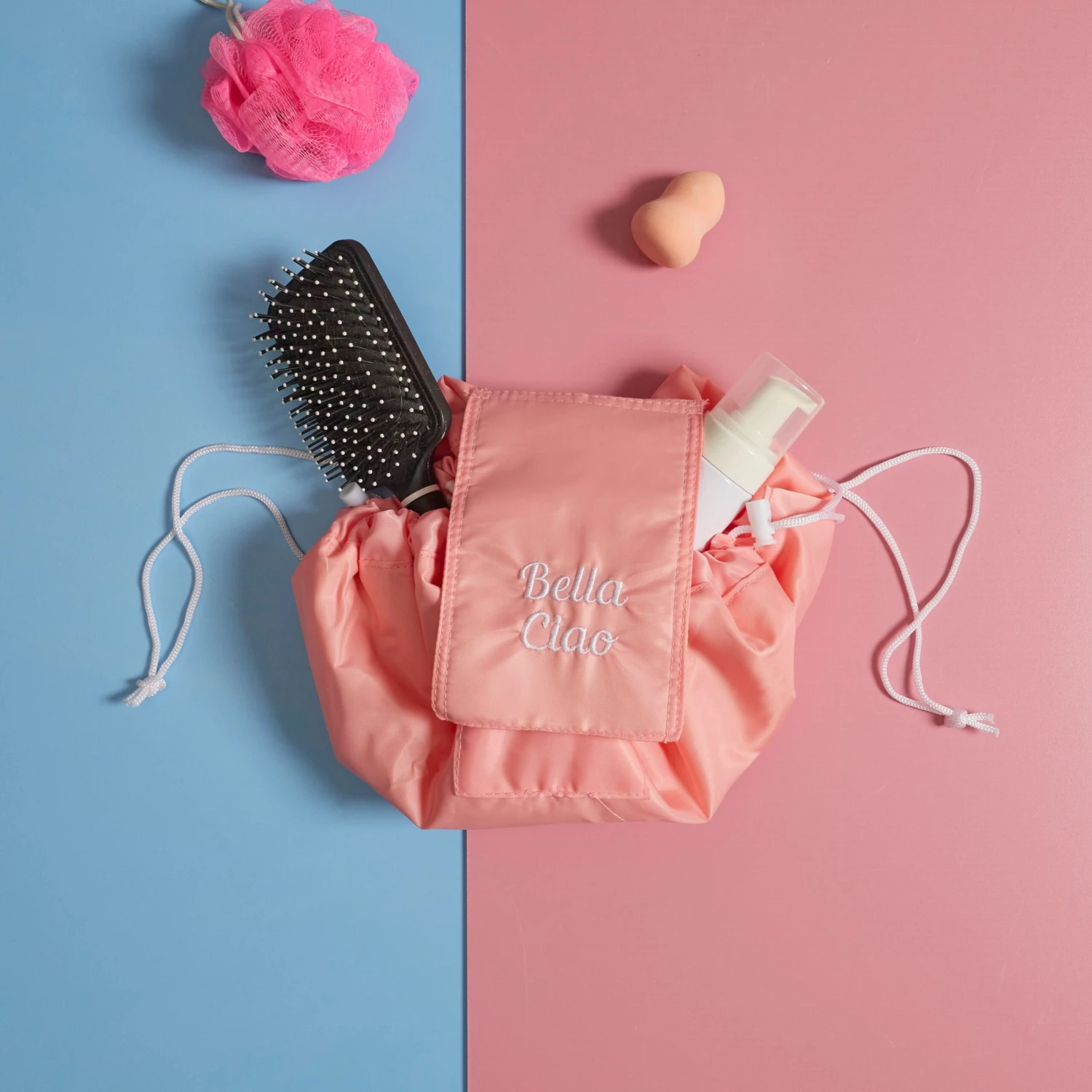 Quoi choisir entre la grande pochette et la petite trousse pour ranger ses produits de beauté ? Faites au plus pratique, avec cette bourse à maquillage qui se règle selon vos besoins. Mascara, poudre, brosse à cheveux…, gagnez de la place en tirant sur les cordelettes pour ajuster la taille, puis fermez le tout avec le rabat et le scratch. Fini le crayon ou l’élastique au fin fond de la pochette. Retrouvez tous vos accessoires immédiatement dans cette bourse qui se déplie à plat. La révolution du maquillage est là !
