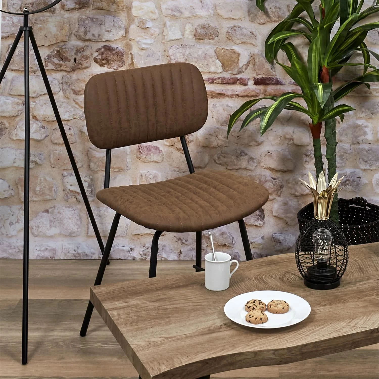 Pour une ambiance à la fois moderne, industrielle, et ayant un esprit vintage, optez pour la chaise taylor marron. Elle rappellera de vieux souvenirs aux générations des années 70, qui seront ravies de s’y installer pour une crêpe party en famille ! Vous allez tomber sous le charme de son assise imitation cuir, et de ses pieds en métal noir.
