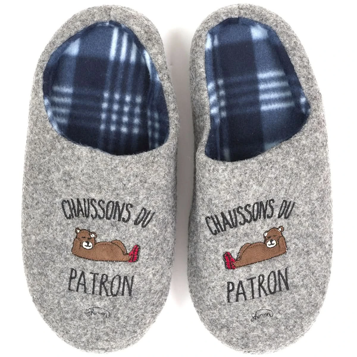 À la maison, c’est vous le patron ! Et ici, vous troquez le costume cravate contre vos chaussons. Qu’on ne vous demande plus rien, vous êtes en mode détente ou dans la salle de bain. Une matière agréable pour un confort absolu, un humour un brin taquin, les chaussons du patron ne vous quittent plus. Pour tous ceux qui aiment le second degré, bien sûr !