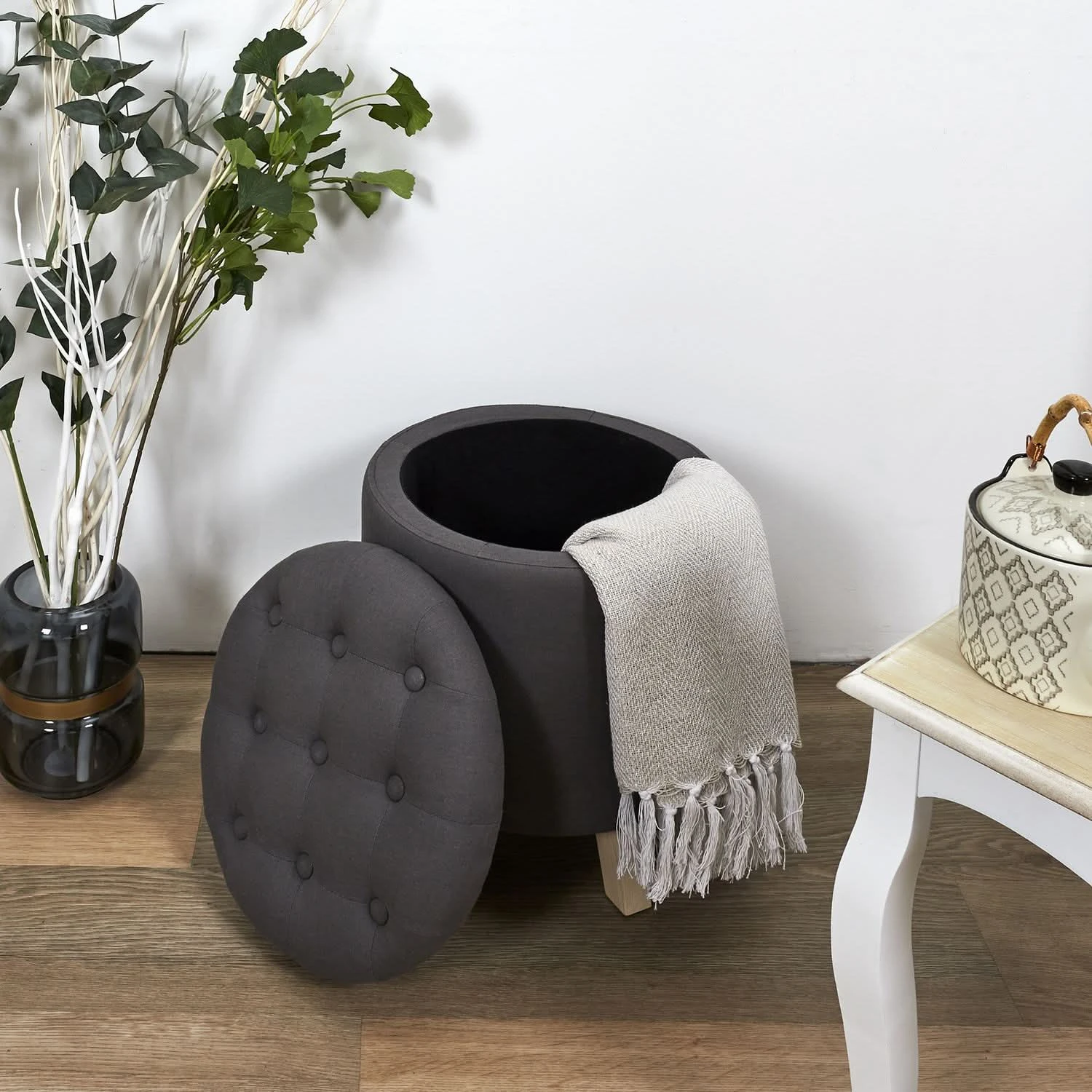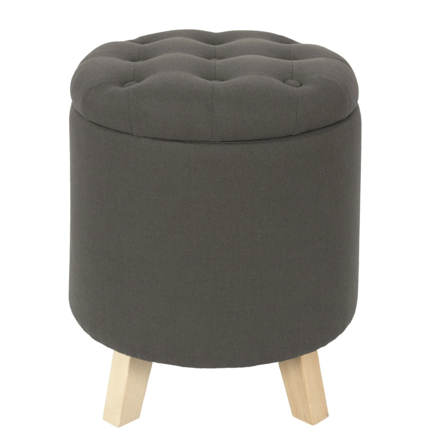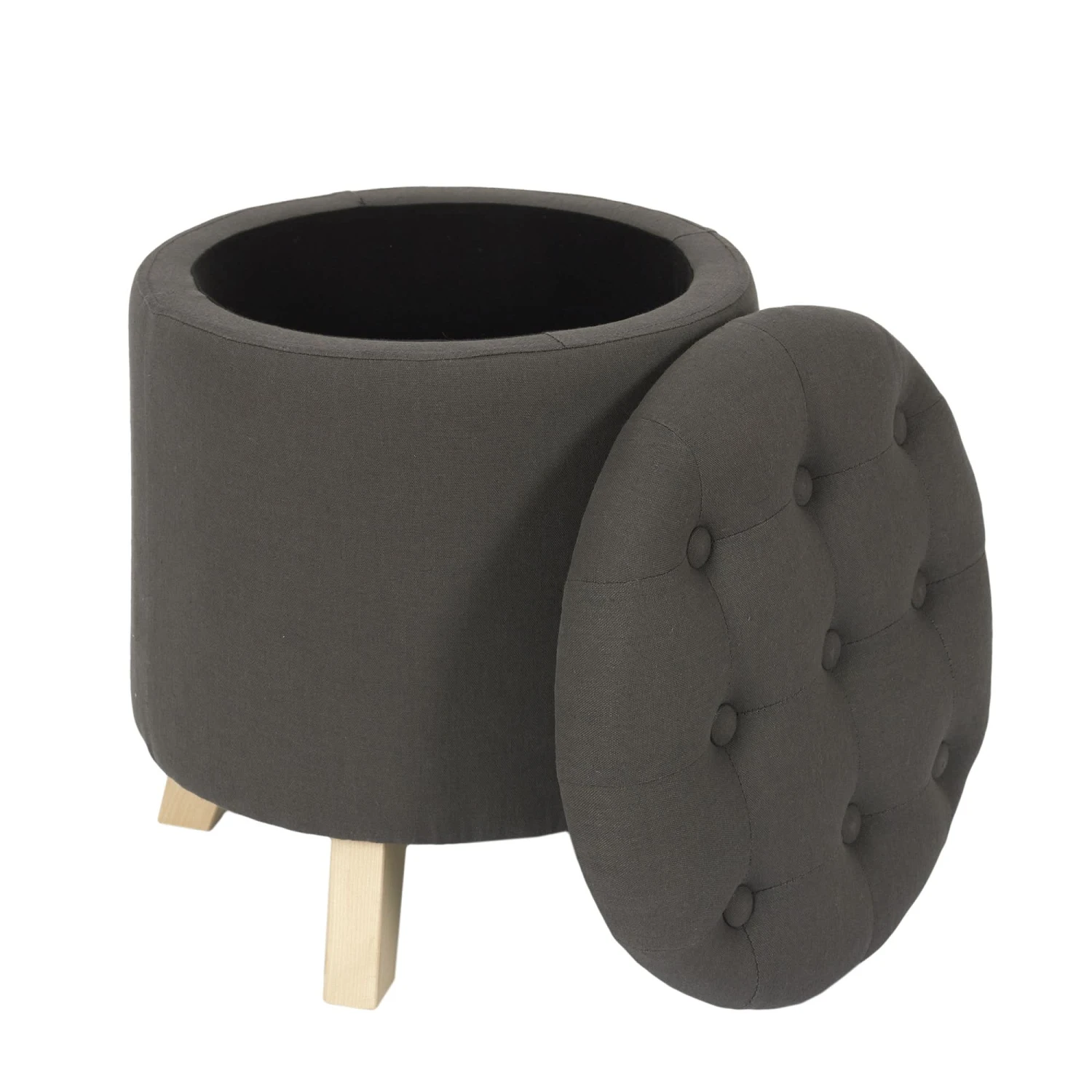 Qui a dit qu’on ne pouvait pas être fêtard et adepte du rangement ? Si c’est votre cas, optez pour ce coffre pouf rond Eleonor ! Le jour, c’est un joli coffre pour ranger votre plaid ou vos objets fétiches, et le soir il se transforme en pouf pour accueillir tous vos amis à l’apéro. Avec son tissu gris, son couvercle capitonné et ses petits pieds en bois, il se mariera parfaitement dans votre décoration moderne et chic.