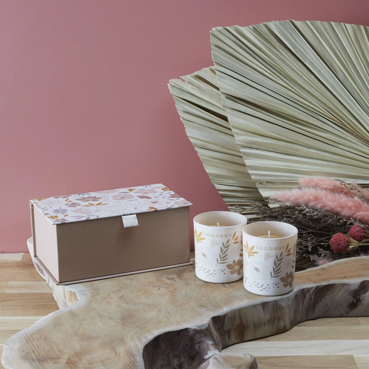 Ce coffret de 2 bougies Bonheur est le cadeau idĂ©al Ă faire, pour montrer Ă votre amie ou Ă votre famille, ce quâelle reprĂ©sente pour vous. C’est une attention particuliĂšre qui fera sans aucun doute, le bonheur de votre meilleure amie.