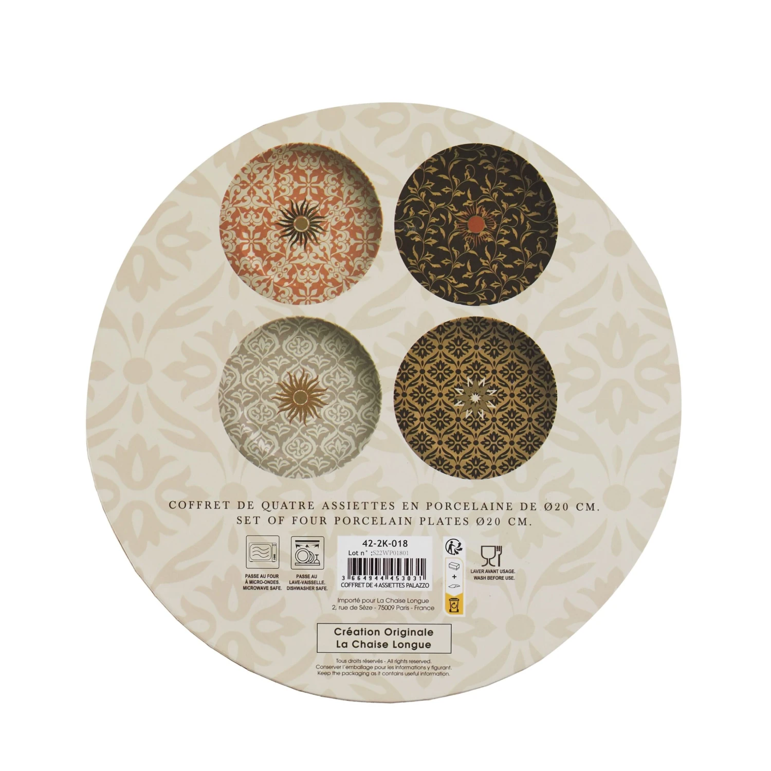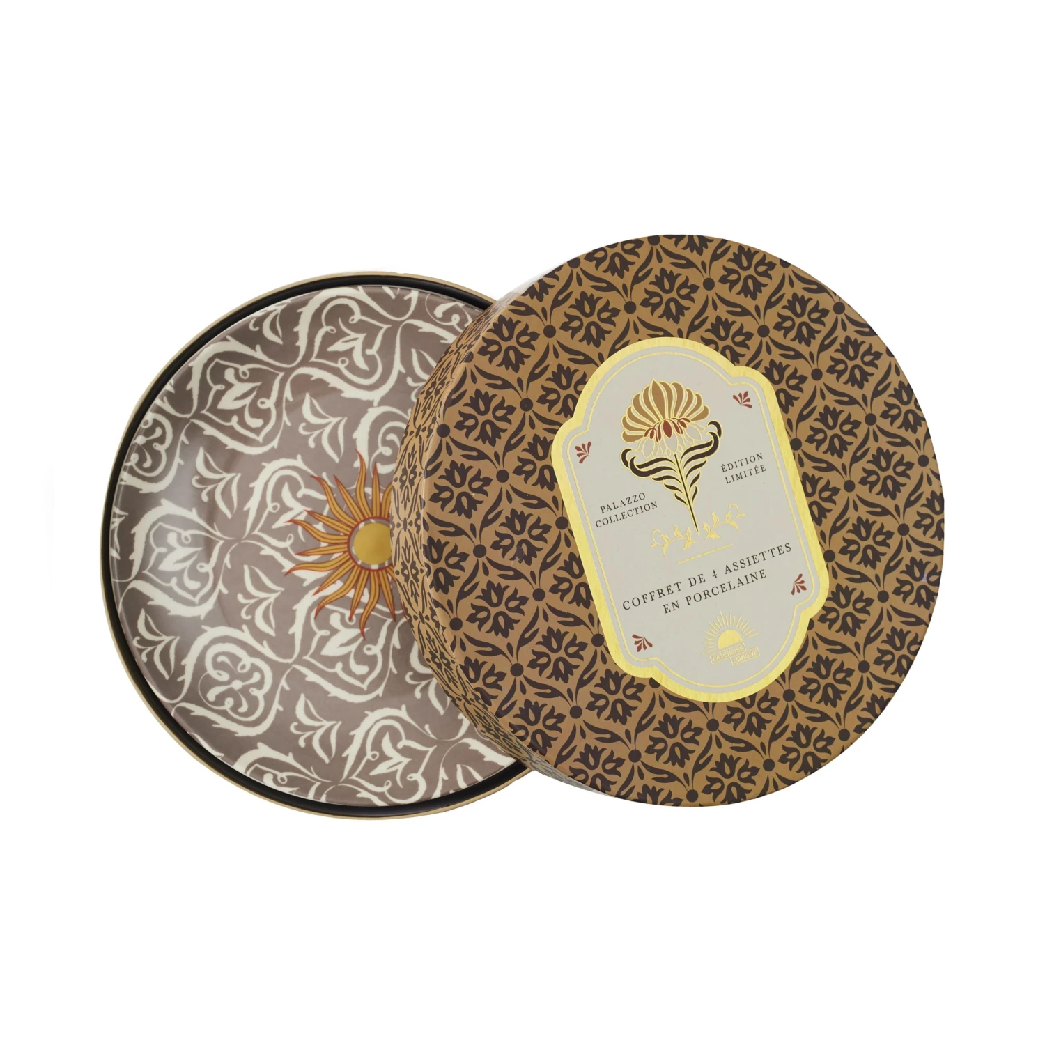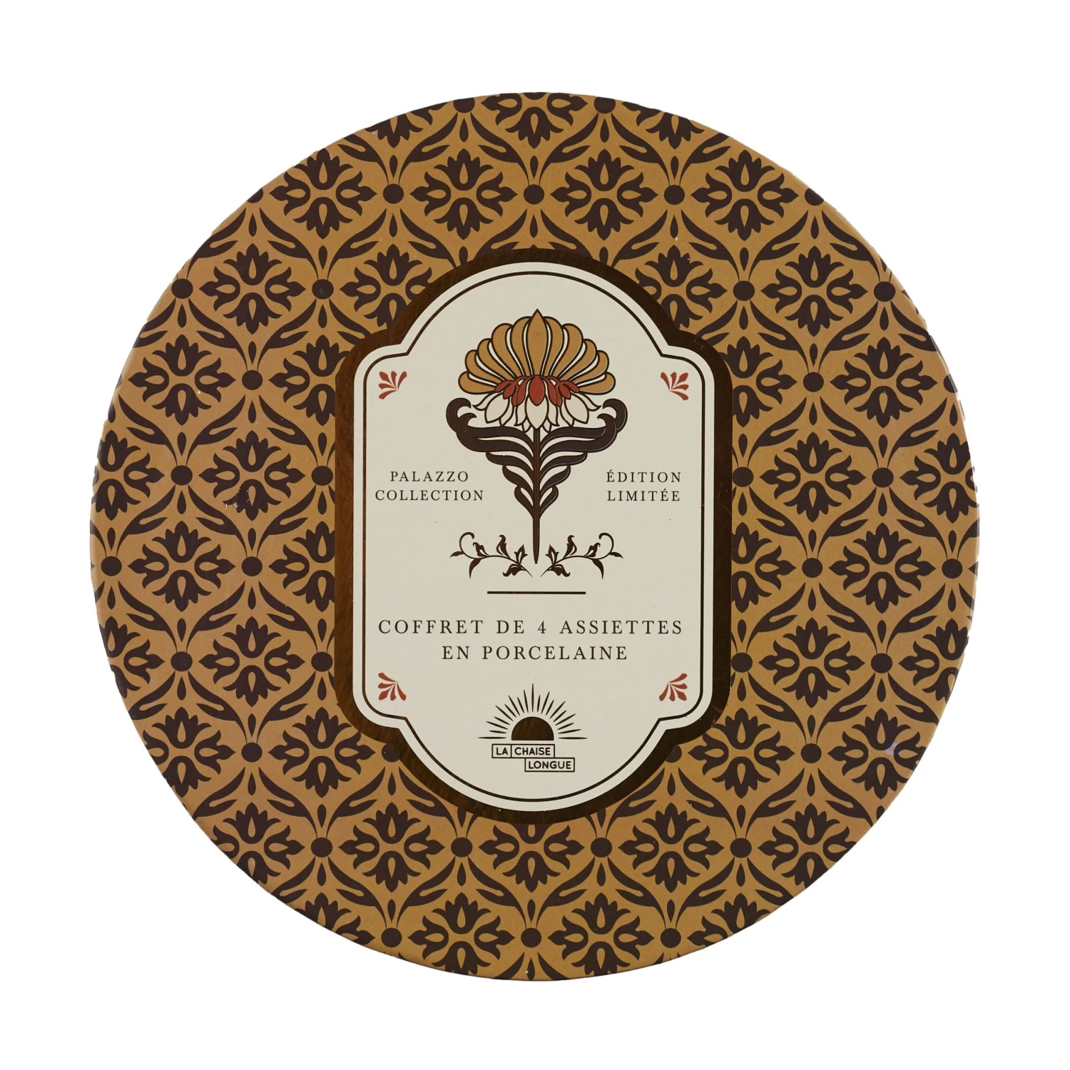 Offrez ce joli coffret de 4 assiettes Palazzo avec ses motifs originaux qui vous transporteront. Une idée de cadeau originale qui saura habiller vos repas !