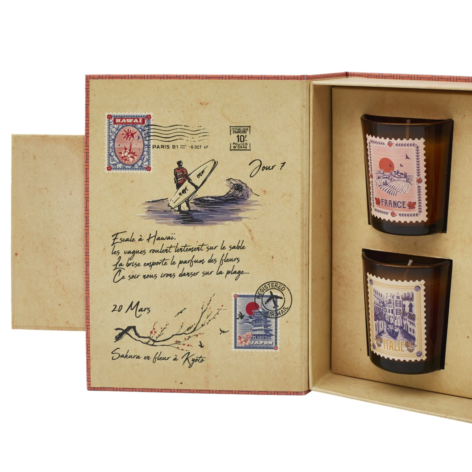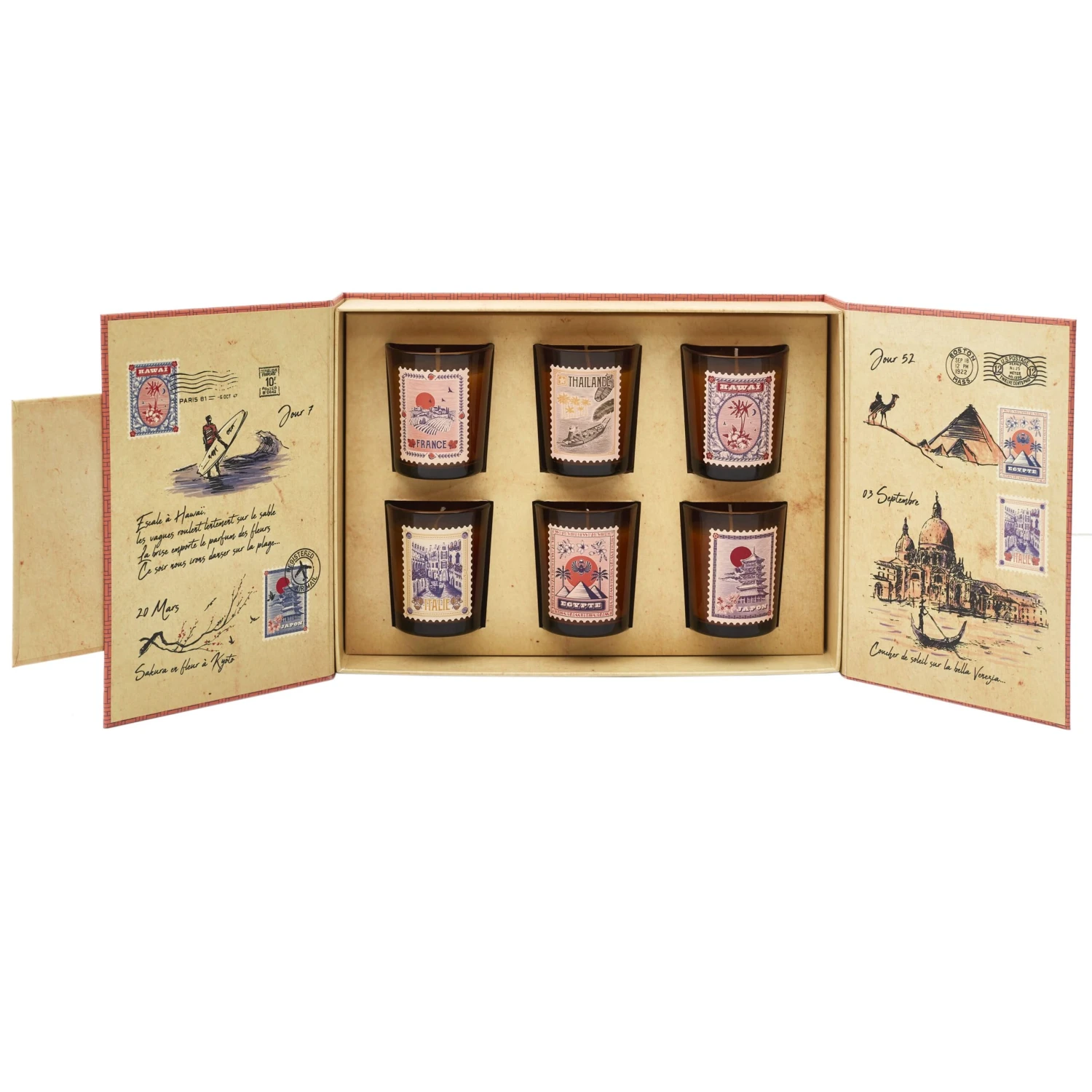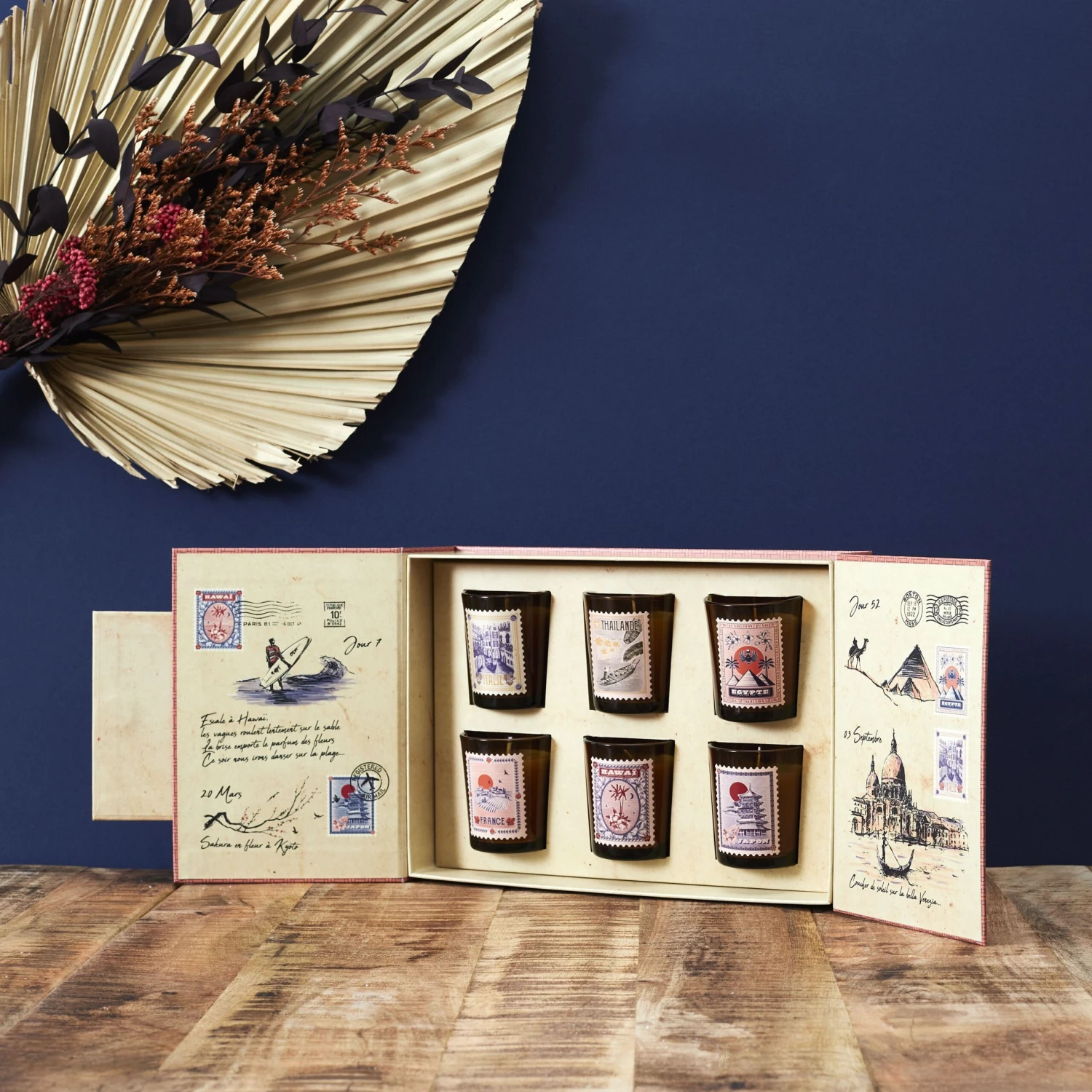 Laissez-moi vous emmener dans un voyage sensoriel avec notre Coffret de Bougies Parfums du Monde. Ce coffret contient une sélection exquise de bougies parfumées, inspirées des destinations les plus envoûtantes du monde entier.