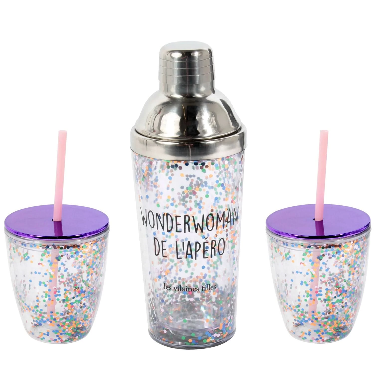 Ajoutez une touche bling-bling dans vos cocktails avec ce coffret shaker paillettes. Pour impressionner vos copines, non seulement vous savez faire de délicieux cocktails mais en plus, ça vole dans tous les sens. Et pour les deux personnes qui vous ont aidée le plus, elles pourront trinquer dans les verres à paillettes avec paille. Alors, c’est qui la wonderwoman de l’apéro ?