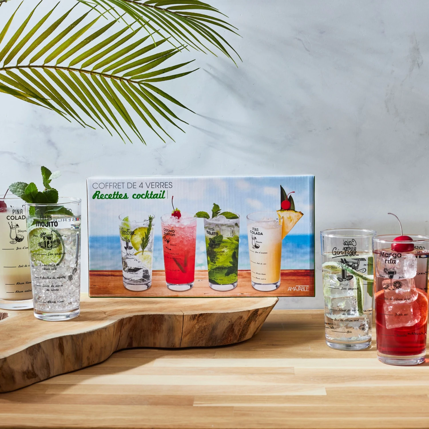 Grâce à ce coffret de 4 verres et leurs 8 recettes de cocktails populaires, pas de risque qu’un ingrédient ne passe à la trappe. À remplir, rafraîchir et givrer à volonté pour une présentation encore plus stylée. Un cadeau utile et bien pensé pour tous les amateurs de mixologie et de soirées improvisées !