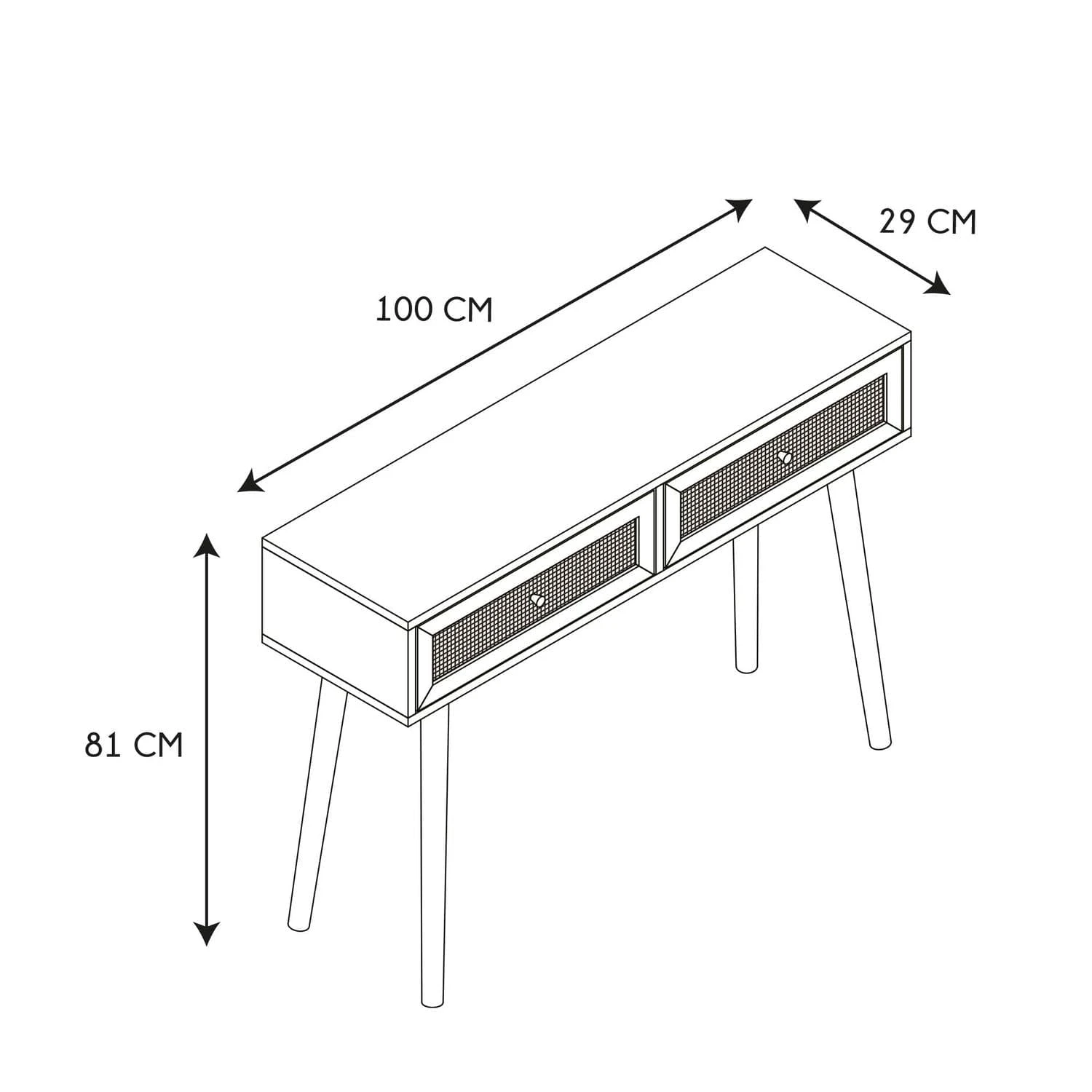 Laissez vous séduire par le look exotique de cette console en bois! Elégante, elle trouvera parfaitement sa place dans votre salon, votre chambre ou votre entrée ! Vous pourrez ranger toutes vos affaires secrètes dans les deux tiroirs en bois avec un effet cannage chic . Le petit plus de cette console, elle est facile à intégrer dans n’importe quel style décoratif. Vous allez l’adorer !