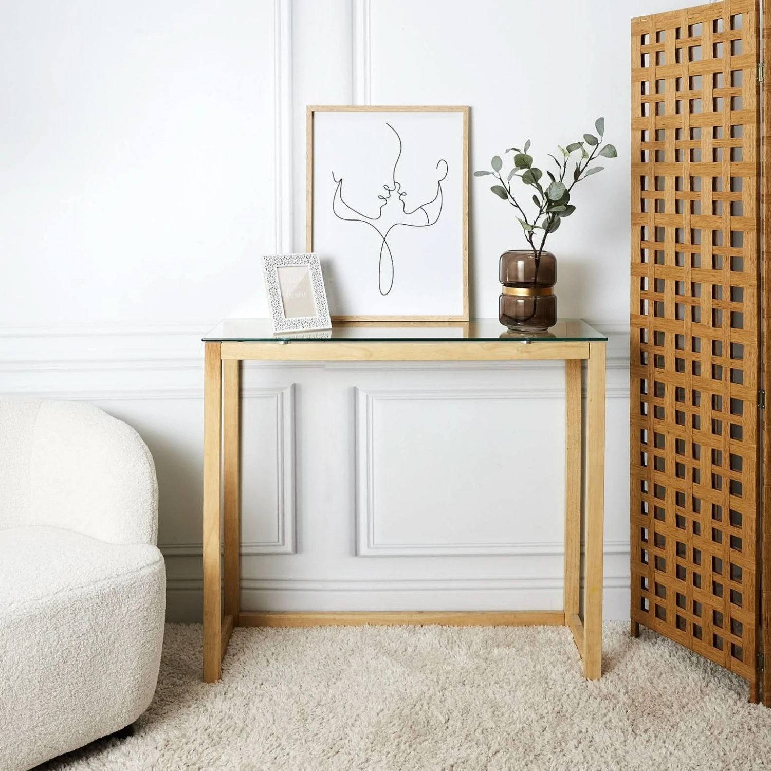 Cette magnifique et élégante console rectangulaire réalisée en verre et en bois s’intégrera à merveille chez vous. Dans votre salon, votre entrée ou votre chambre, c’est le meuble idéal pour une touche moderne et discrète! Cette console se mariera parfaitement avec un style scandinave et chic.
