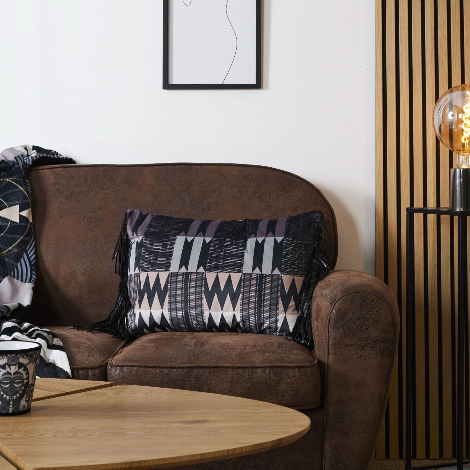 Ce coussin CAMANA, vous transportera avec ses motifs ethniques et orignaux en association avec son velours et de ses franges en simili-cuir qui lui donne son aspect intense. Avec cette vivacité, soyez certain de délivrer chaleur, confort et profondeur à votre décoration d’intérieur. Son élégance naturelle pourrait devenir la pièce maîtresse de votre habitat. Une idée de cadeau qui vous emporte et vous fait voyager.