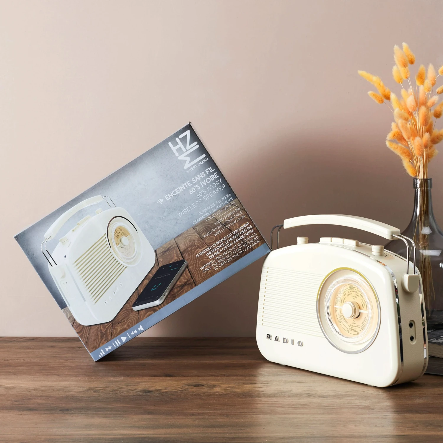 Cette enceinte 60s ivoire rĂ©unit le meilleur de deux Ă©poques : un design dĂ©licieusement vintage et un petit bijou de technologie qui vous permet dâĂ©couter vos tubes prĂ©fĂ©rĂ©s partout oĂč vous voulez. Facilement transportable et compatible smartphone, cette enceinte sans fil Bluetooth fera le bonheur des mĂ©lomanes nomades adeptes de vintage et de son de qualitĂ©. En pique-nique ou Ă la plage, Ă vous les escapades musicales entre amis tout lâĂ©tĂ© ! Et pour les plus casaniers, son look rĂ©tro en fera un superbe objet dĂ©co idĂ©al pour animer vos soirĂ©es. Une belle idĂ©e cadeau qui enchantera assurĂ©ment la personne Ă qui vous lâoffrirez.