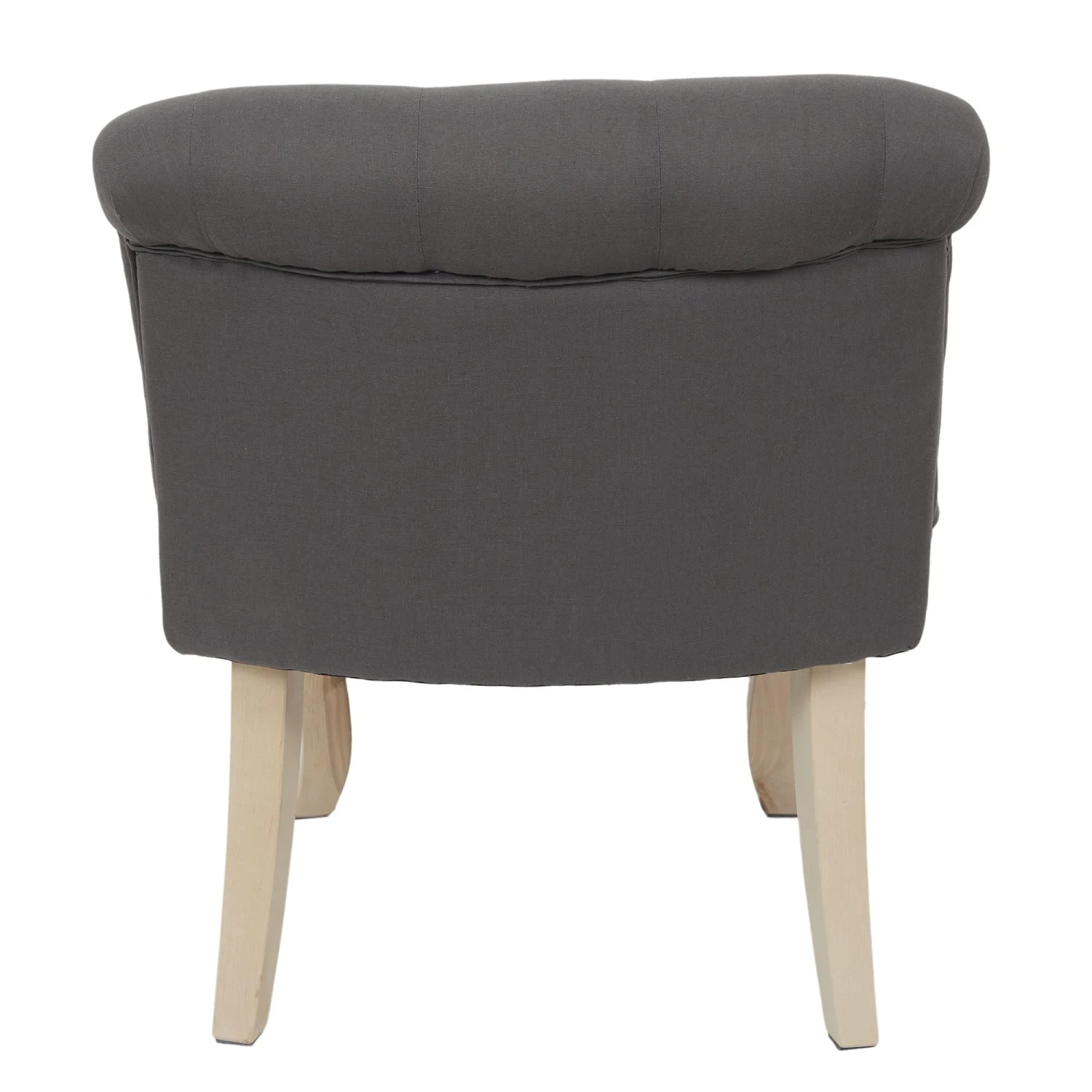 Quand l’élégance rencontre le confort, apparait le fauteuil Eleonor. Vous allez tombez sous le charme de ce fauteuil gris chic et classique, avec ses formes, ses pieds en bois, son tissu beige, et son dossier capitonné. Vos copines seront toutes jalouses !