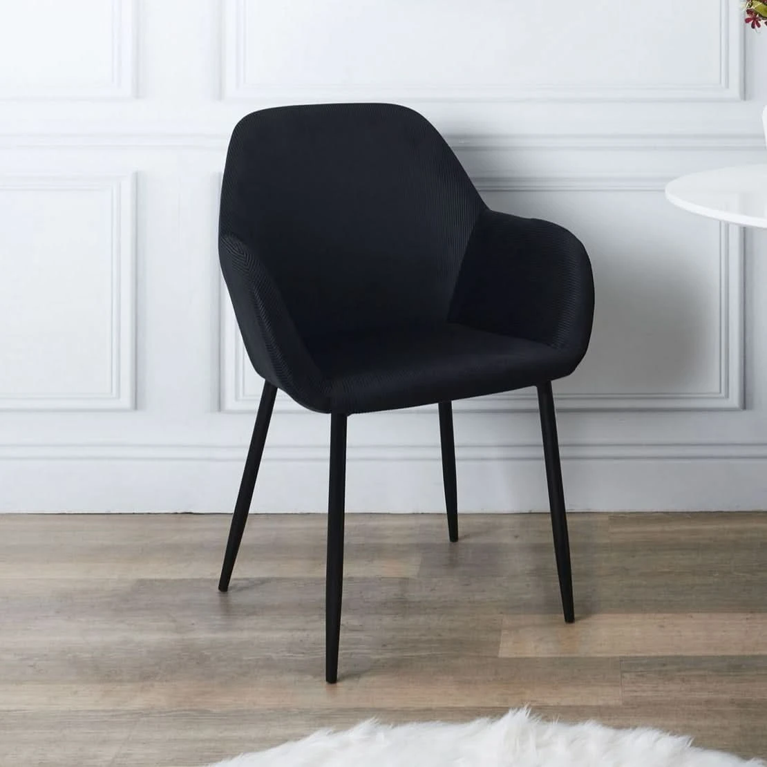 Ce fauteuil est l’incarnation parfaite du charme rétro-chic. Son coloris noir ajoute une touche de modernité! Son velours côtelé, d’une texture si délicate, donne envie de s’y lover comme dans un cocon douillet. Pour un long repas de famille à écouter les histoires de tonton, ou pour un moment détente à lire un livre, se fauteuil Giulia s’adapte à toutes les situations et offre un maximum de confort.