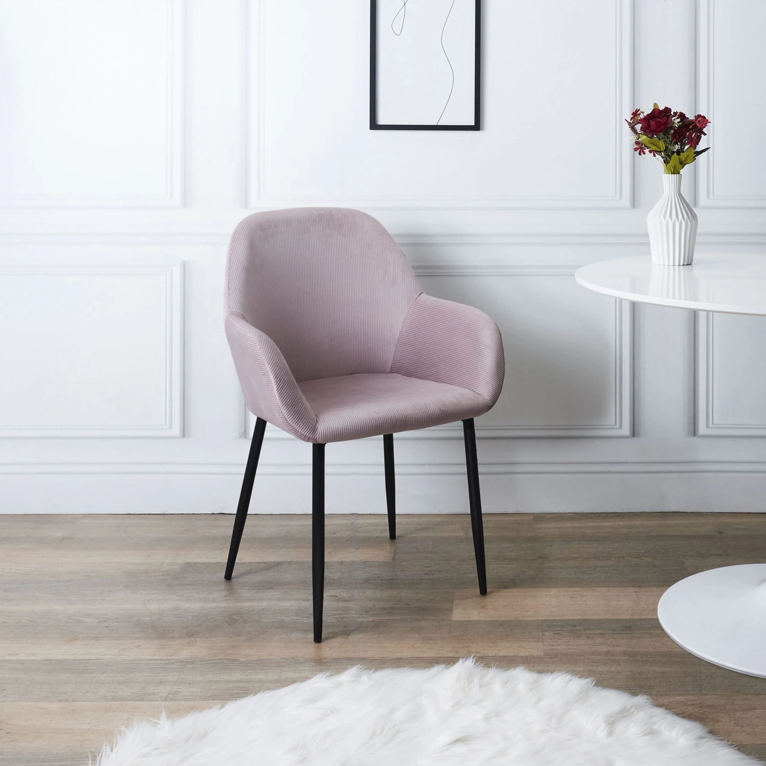 Ce fauteuil est l’incarnation parfaite du charme rétro-chic. Son coloris rose ajoute une touche d’originalité! Son velours côtelé, d’une texture si délicate, donne envie de s’y lover comme dans un cocon douillet. Pour un long repas de famille à écouter les histoires de tonton, ou pour un moment détente à lire un livre, se fauteuil Giulia s’adapte à toutes les situations et offre un maximum de confort.