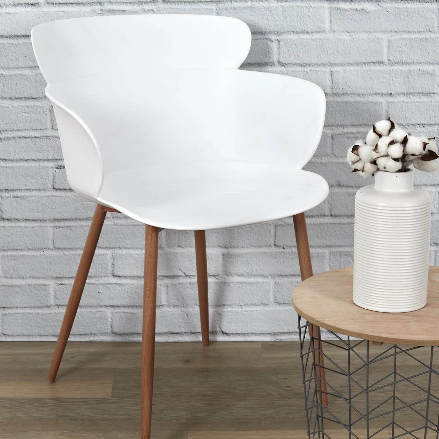 Avez-vous déjà vu un fauteuil aussi stylé ? Avec son look contemporain et scandinave, il laissera sans voix tous vos invités ! Comment ne pas tomber amoureux de sa coque blanche moulée et ses pieds imitation bois ? Mais attendez ce n’est pas tout, il est aussi super confortable ! Ce fauteuil Lorens sera donc idéal pour rester zen et détendu, même pendant les repas de famille interminables.