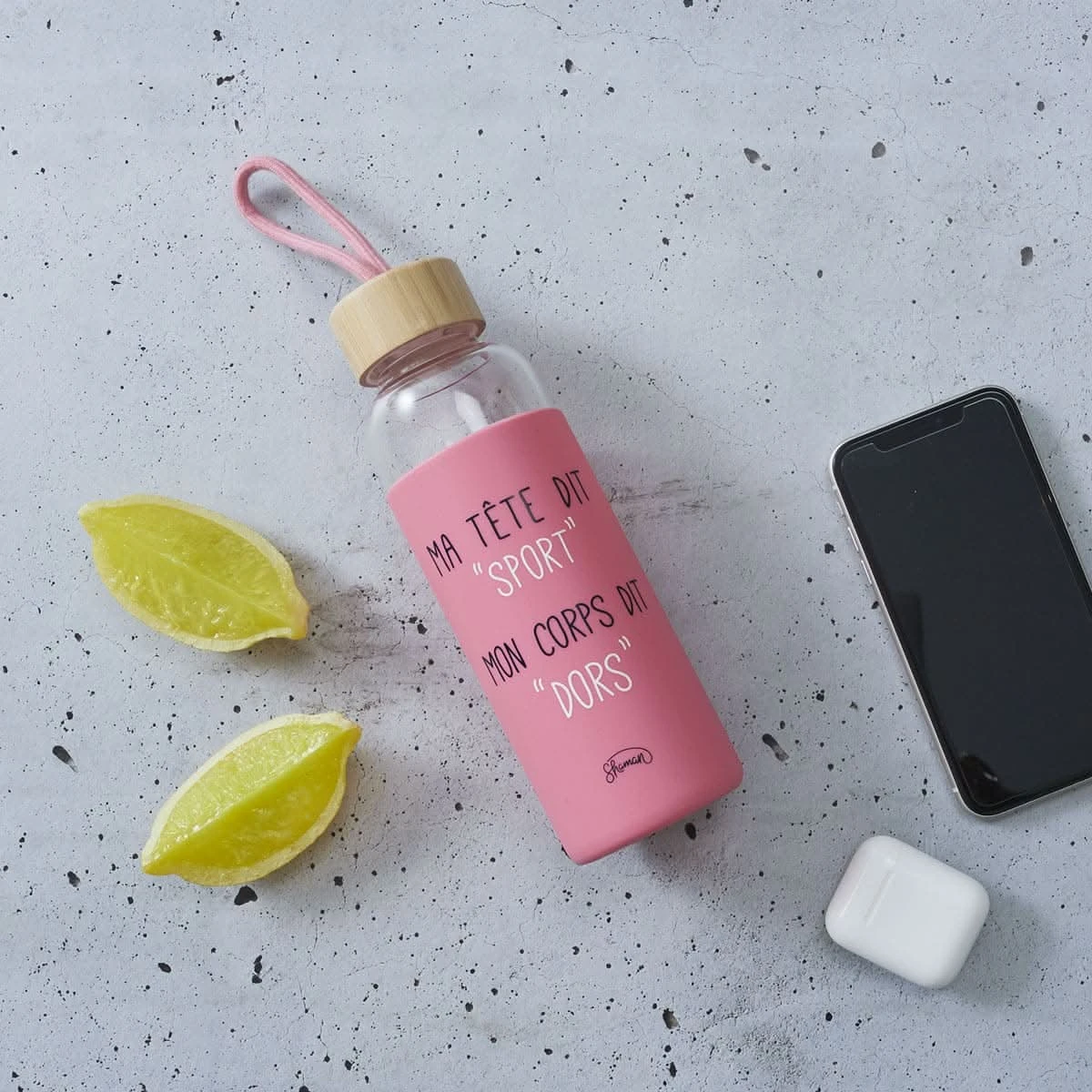 - Gourde en verre ma tête dit sport mon corps dit dort