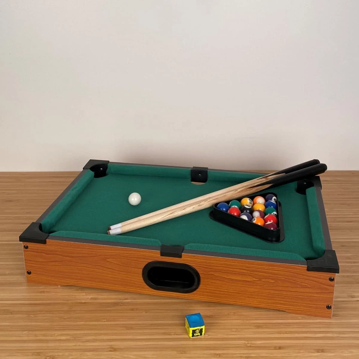 Vous n’avez pas la place pour un billard ? Ce mini billard de table est fait pour vous ! Compact, il se pose sur une table et se range dans un placard. Livré complet avec ses accessoires il a tout d’un grand !