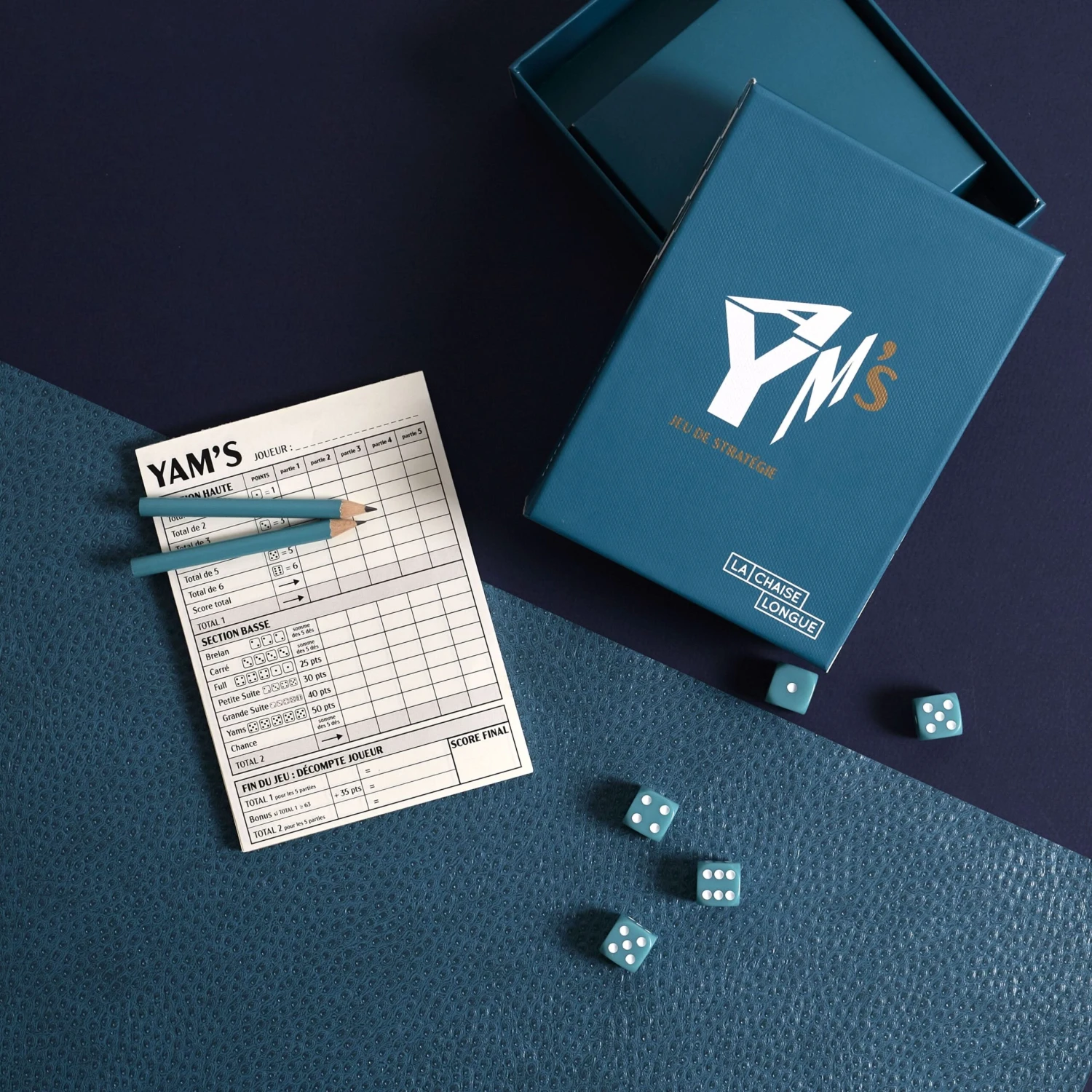 Le jeu de Yams, Ă©galement connu sous le nom de Yahtzee, est un jeu de dĂ©s populaire dans lequel les joueurs lancent cinq dĂ©s Ă six faces et tentent d’obtenir des combinaisons spĂ©cifiques pour marquer des points. Ce jeu est facile Ă apprendre, rapide Ă jouer et convient Ă tous les Ăąges. C’est un excellent jeu pour les soirĂ©es en famille ou entre amis !