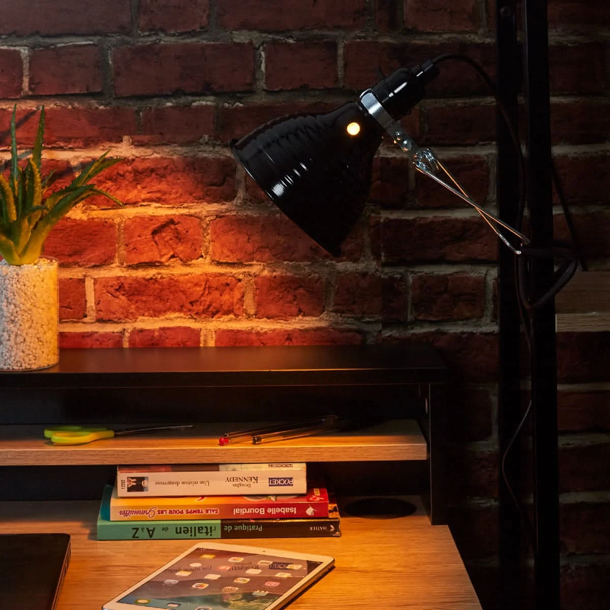 Cette lampe clip loft noir va vous donner envie d’adopter une déco d’intérieur atelier, loft rétro. Ultra pratique pour éclairer un point précis, vous pouvez l’orienter dans toutes les positions. Mais ce qui est encore mieux, c’est sa grande pince pour la fixer sur n’importe quel support. Vous pouvez donc travailler à table, lire dans le lit, bricoler dans le garage et l’utiliser dans les endroits les plus inaccessibles. Alors, convaincu ?