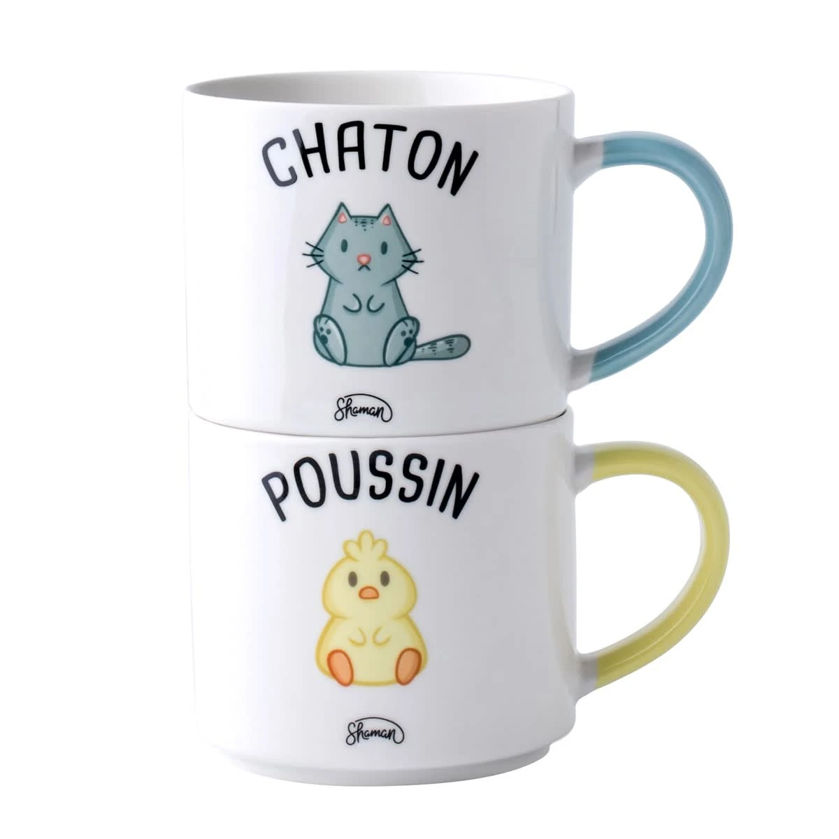 Il vous appelle chaton, elle vous surnomme poussin…, des petits noms affectueux qui montrent tout l’amour qu’il y a entre vous. Ce mug duo mat poussin chaton est un cadeau parfait à offrir à votre moitié, idéal pour un bon petit déjeuner. Et, pas besoin d’attendre un événement particulier !