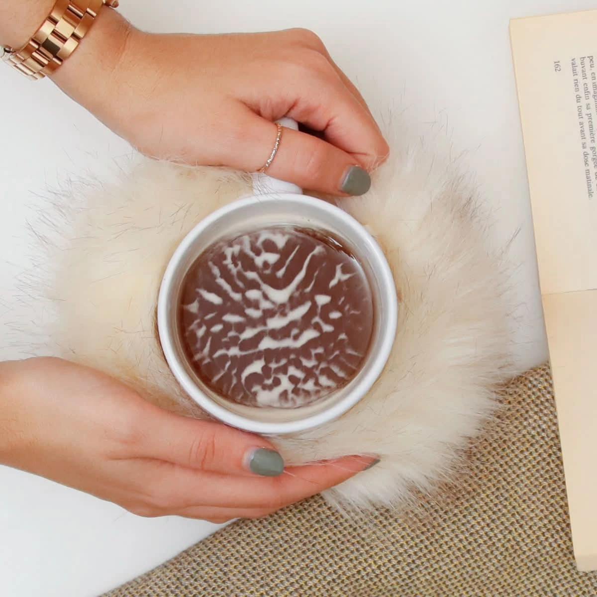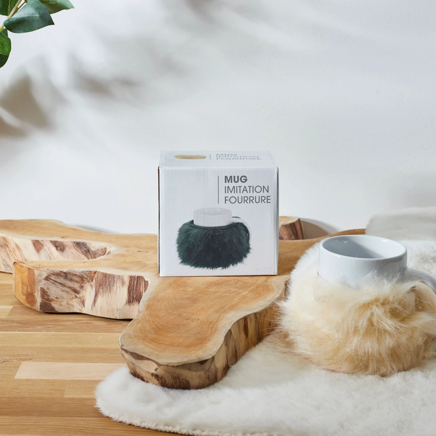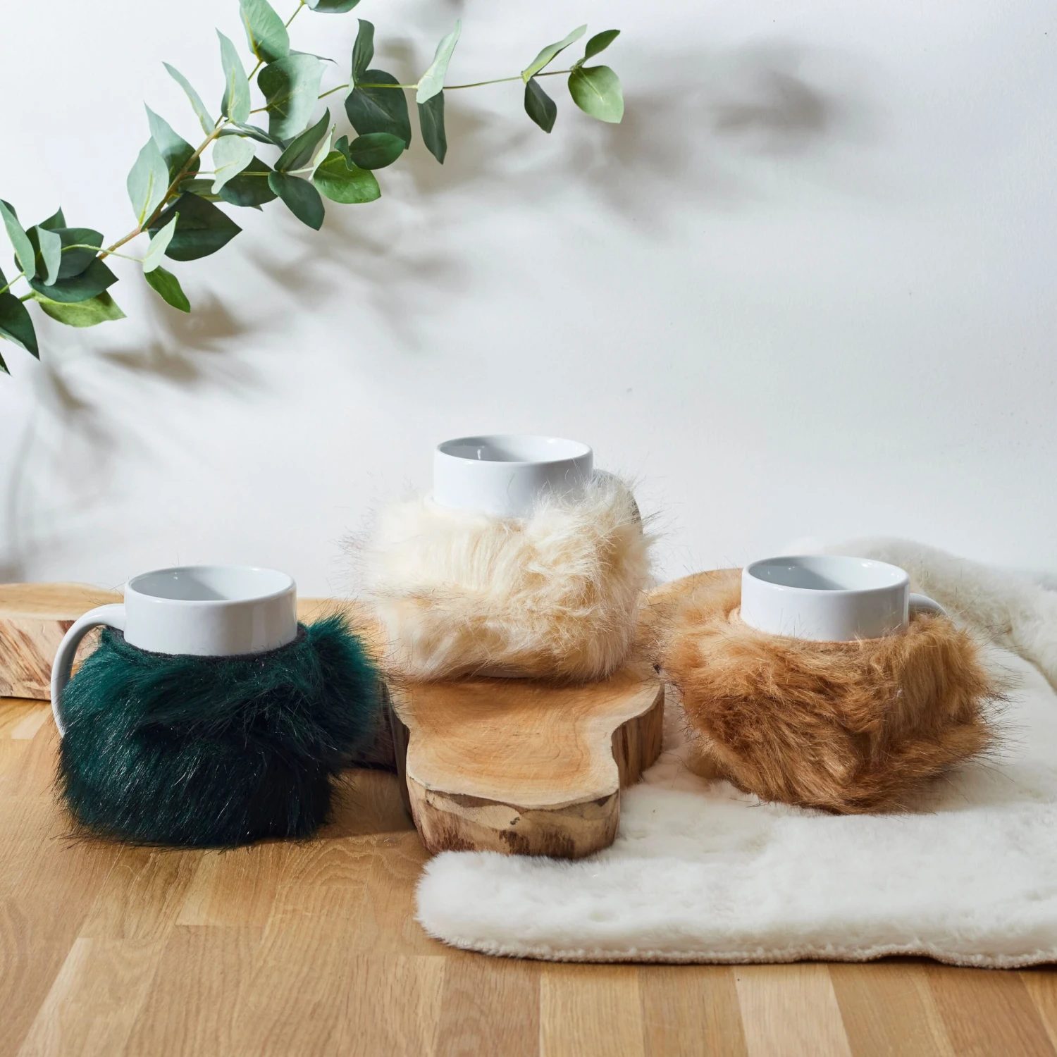 - Fausse fourrure qui s’enroule autour du mug