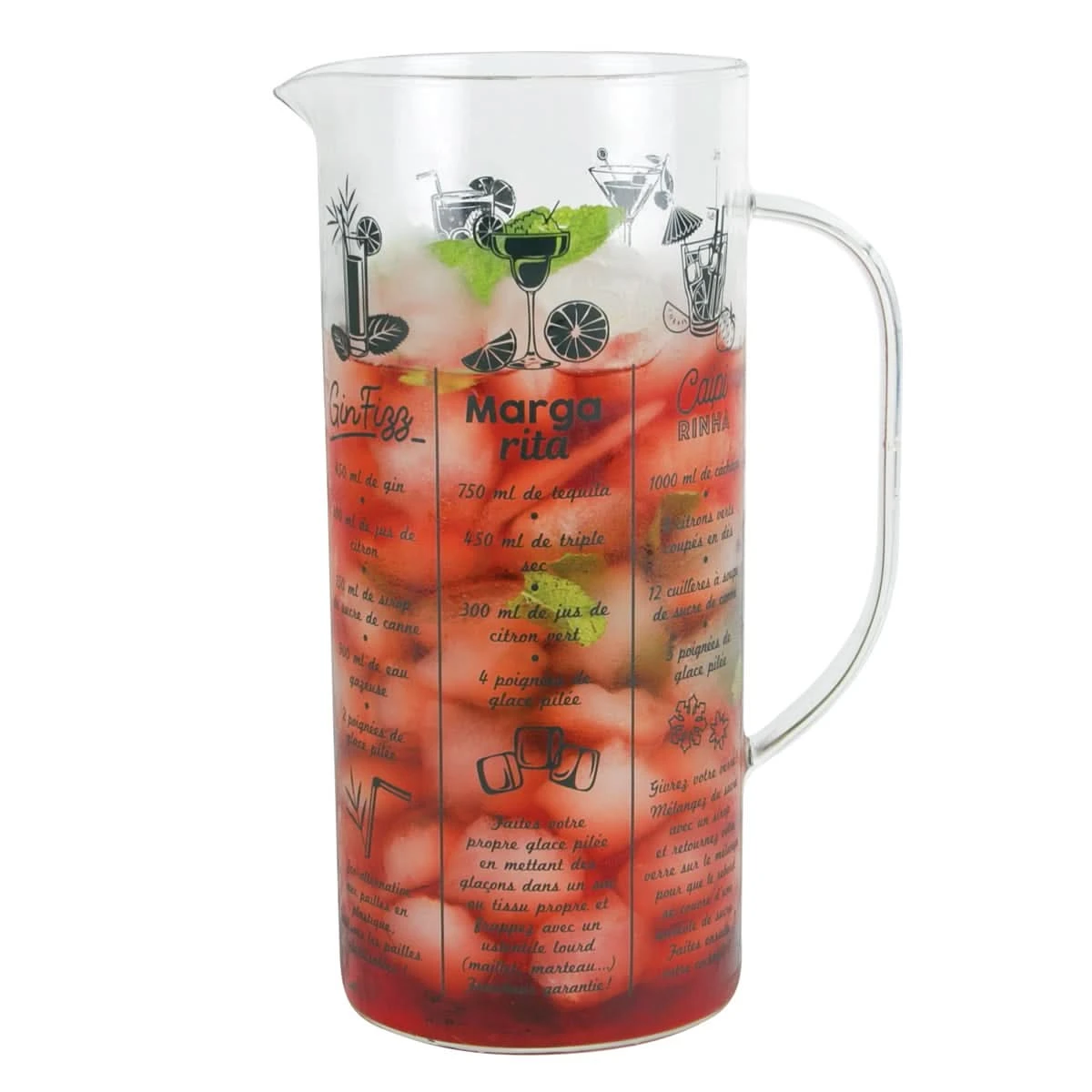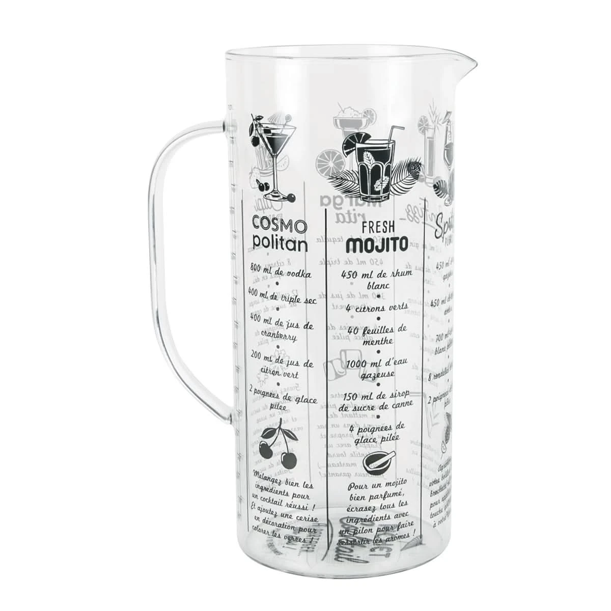 Margarita, Mojito, Cosmopolitan, Gin Fizz…, et si vous faisiez un petit cocktail ? Oui, mais c’est quoi la recette déjà ? Pas de panique, tout est noté sur ce pichet cocktail. Chaque ingrédient à a sa graduation, impossible de se tromper. Parfait pour les apéros de dernière minute ! Il ne manque plus que la tranche de citron !