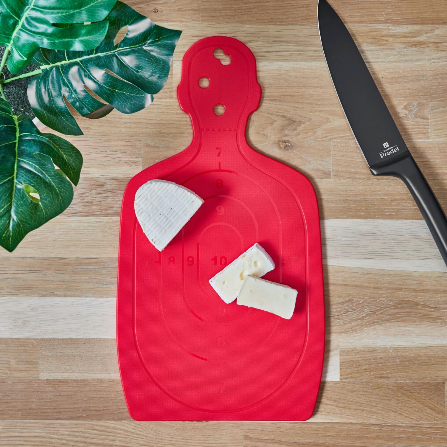 A défaut de vous inscrire dans un stand de tir, vous évacuerez peut-être vos envies de carnage en choisissant cette planche à découper à la tête toute trouée. Un conseil : pour tailler dans le vif, évitez le fusil, un couteau fera l’affaire !