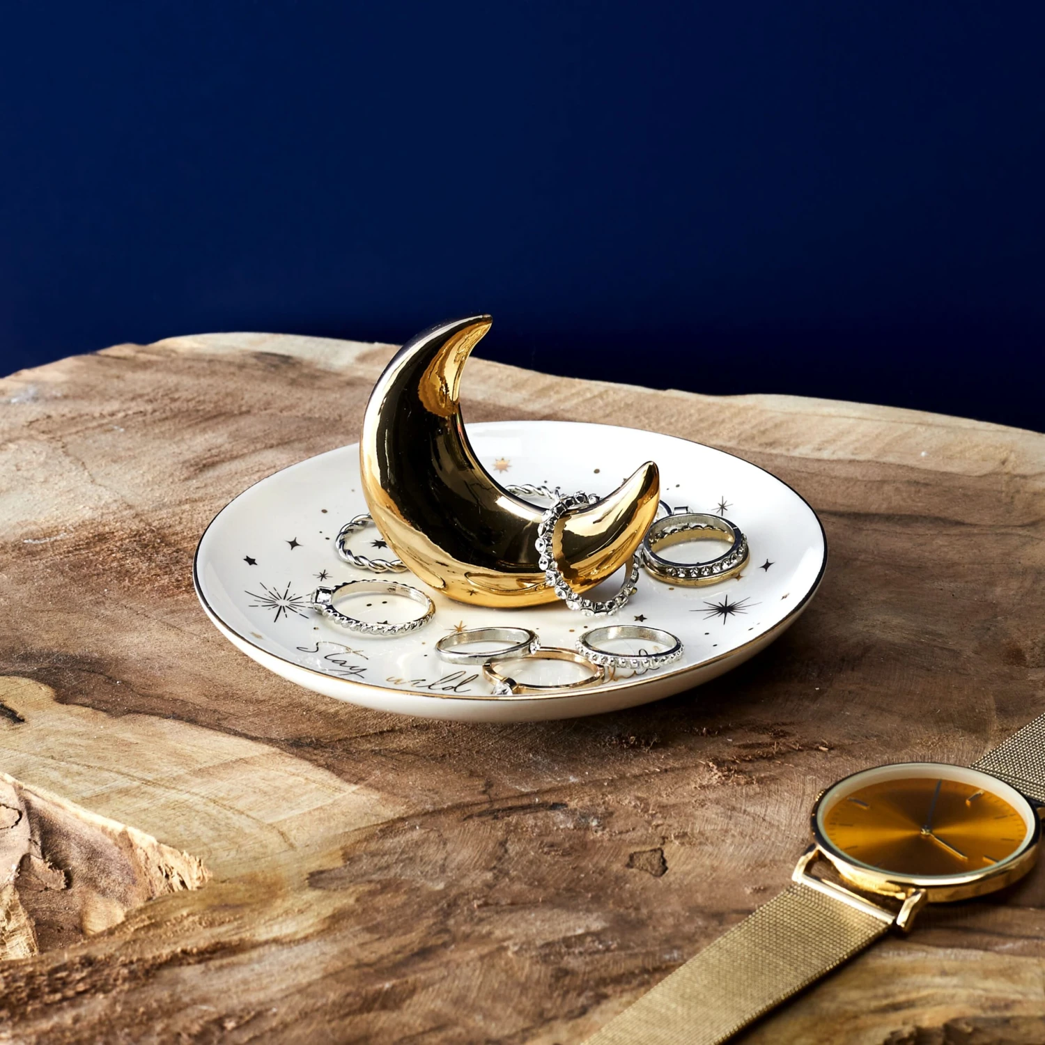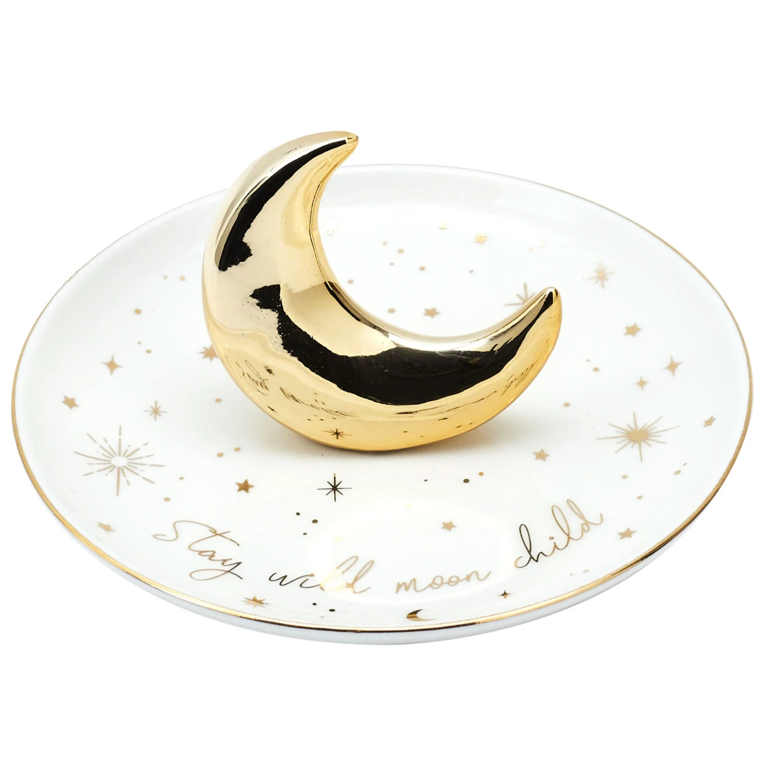 Ce porte-bagues You’re Magic est doté d’une lune dorée sur une assiette où vous ne perderez plus vos bagues !