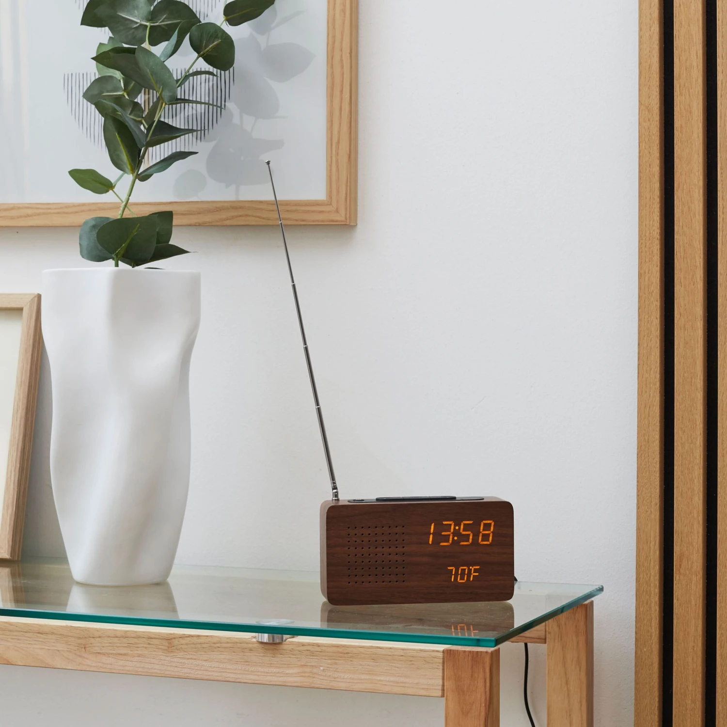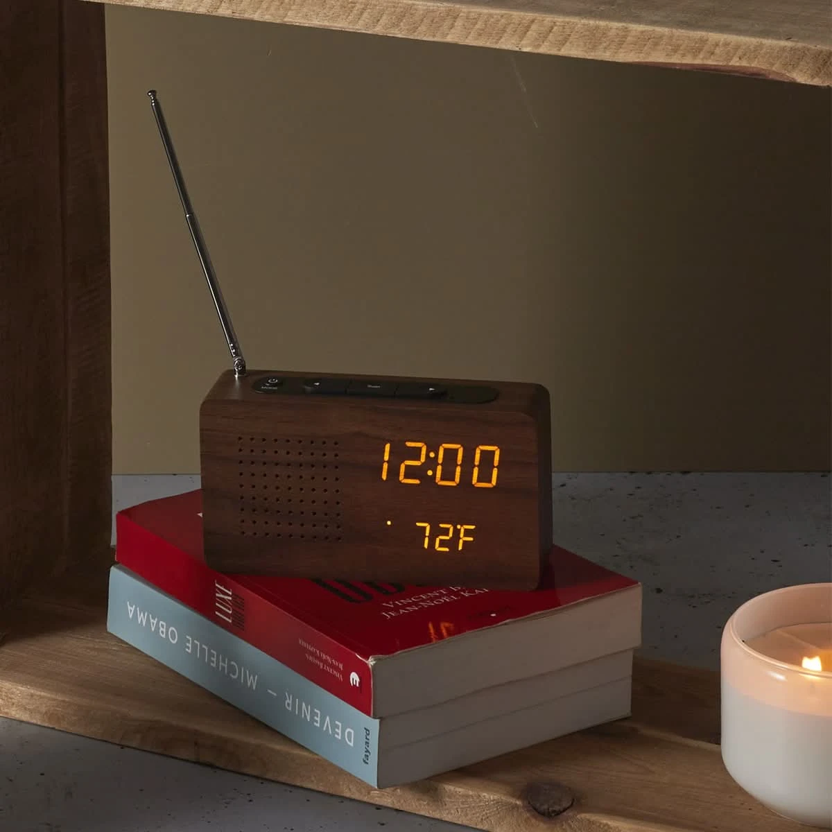 Ce radio-réveil bois se fondra parfaitement dans le décor de votre chambre. Le design convient aussi bien à un intérieur rustique, contemporain, industriel, moderne ou minimaliste. On aime son affichage numérique directement sur le bois qui vous indique également la température ambiante.