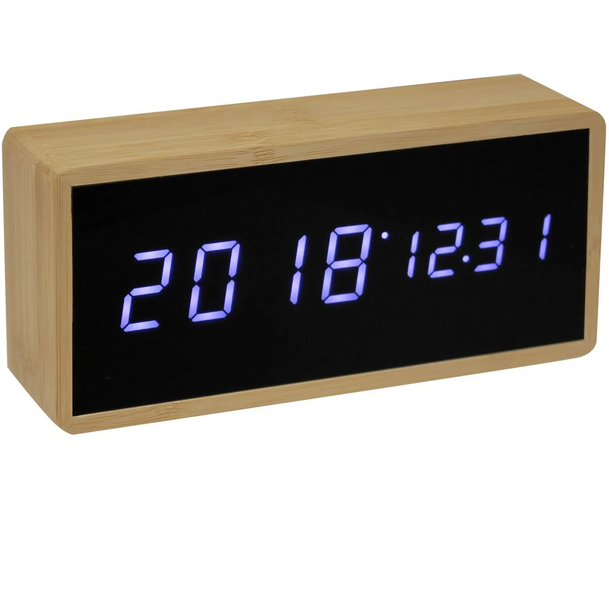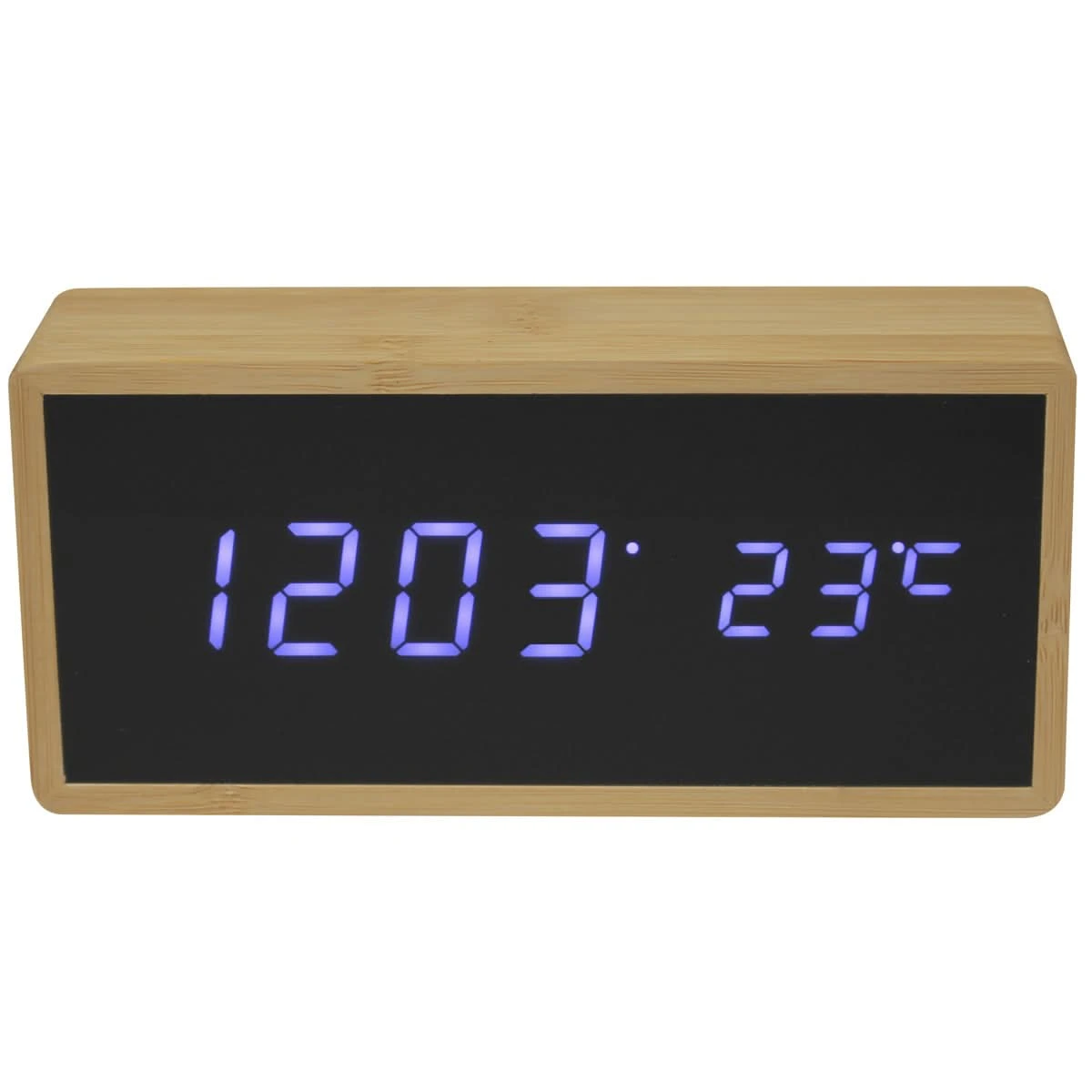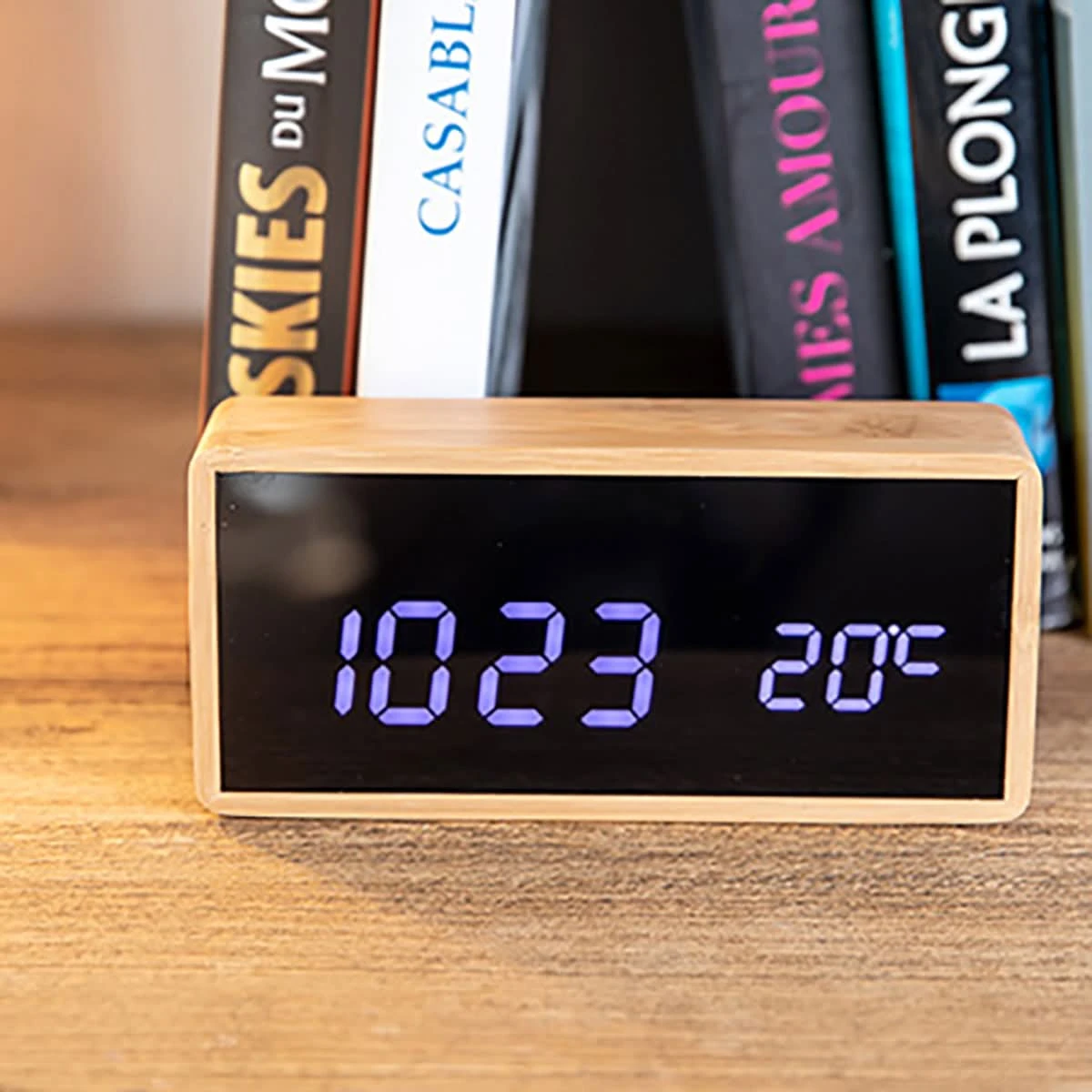 Réveillez vous au naturel avec ce grand réveil en bambou ! Savant mélange de surfaces en bambou et d’une façade noire c’est un bel exercice de design. En plus d’afficher l’heure ce réveil affiche également la température. Pratique avant de poser un pied au sol… Trop froid ce matin ? Restez encore cinq minutes sous la couette ! L’affichage blanc lumineux de son grand écran permet de lire l’heure dans l’obscurité. Fonctionnant au choix sur piles ou sur USB ce réveil en bambou vous pousse hors du lit chaque matin.