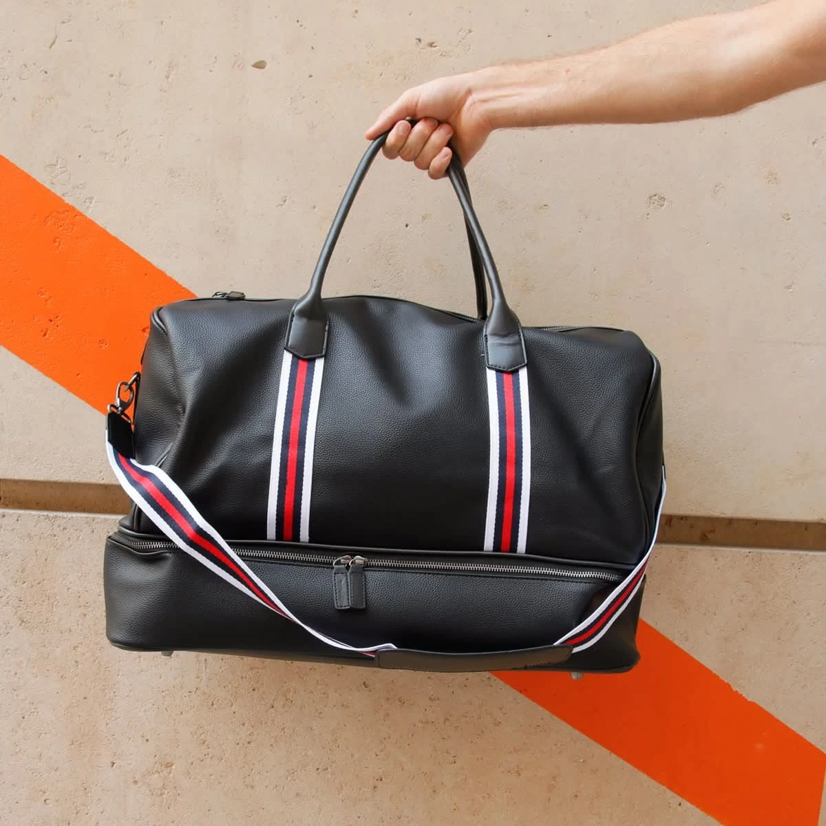 Vêtements, trousse à toilette, portefeuille… Faites vos bagages et partez en voyage aussi rapidement qu’une voiture de course avec ce sac Racing Club Daytona.
