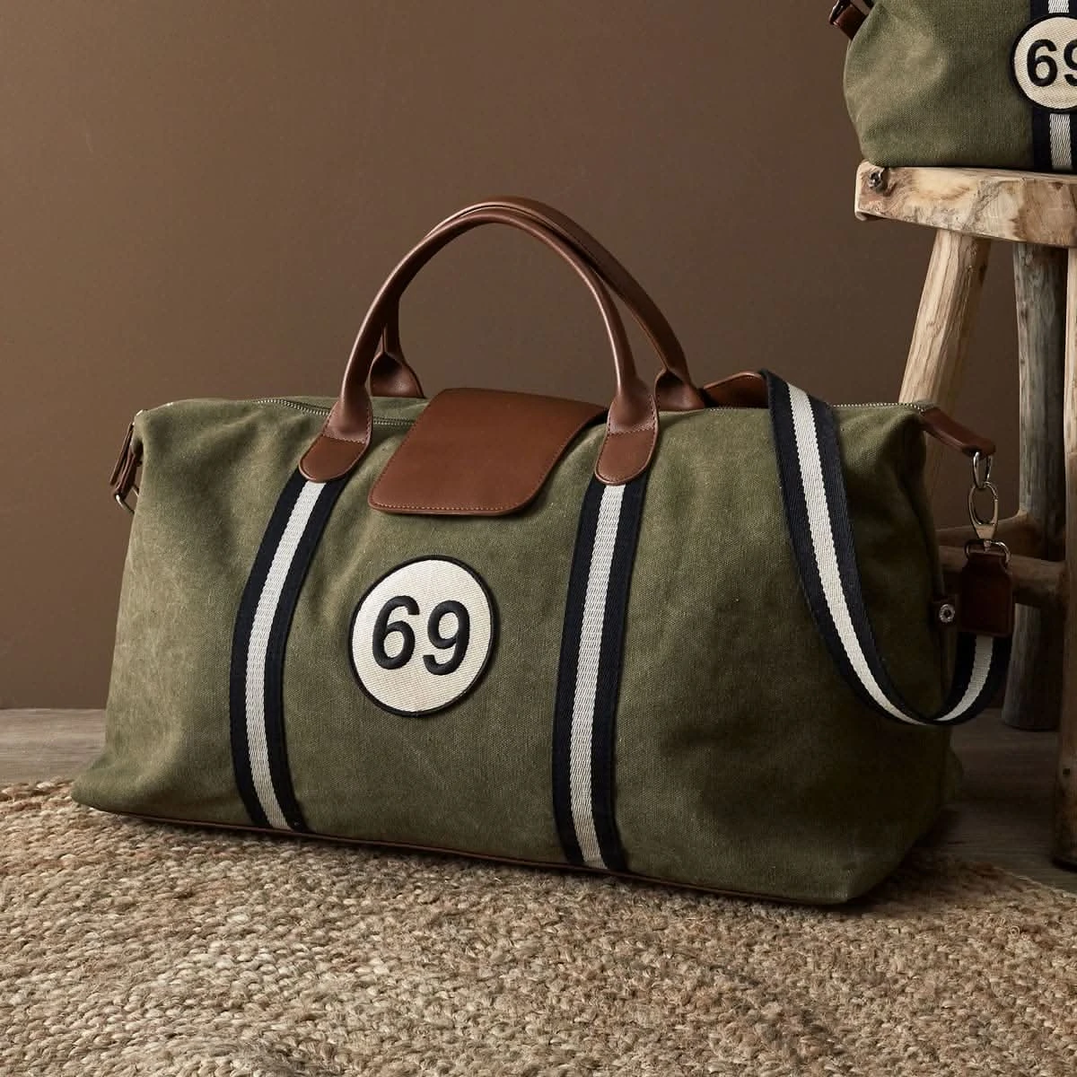Week-end improvisé ou vacances programmées ? Il y a toujours une bonne excuse pour sortir son sac de voyage sprint 69 kaki ! Un accessoire au design vintage indémodable équipé de deux poignées et d’une bandoulière, pour le porter à la main ou à l’épaule. On le remplit avec quelques habits, des produits de toilette et une paire de baskets : Messieurs, vous voilà parés pour une escapade romantique, entre potes ou solo. Le petit plus ? On le combine avec la trousse de toilette sprint 69 kaki pour un effet assorti ! Une super idée cadeau pour un pote qui aime bouger ou pour envoyer un message codé à votre bien-aimé… (Chéri, on part en week-end ?).
