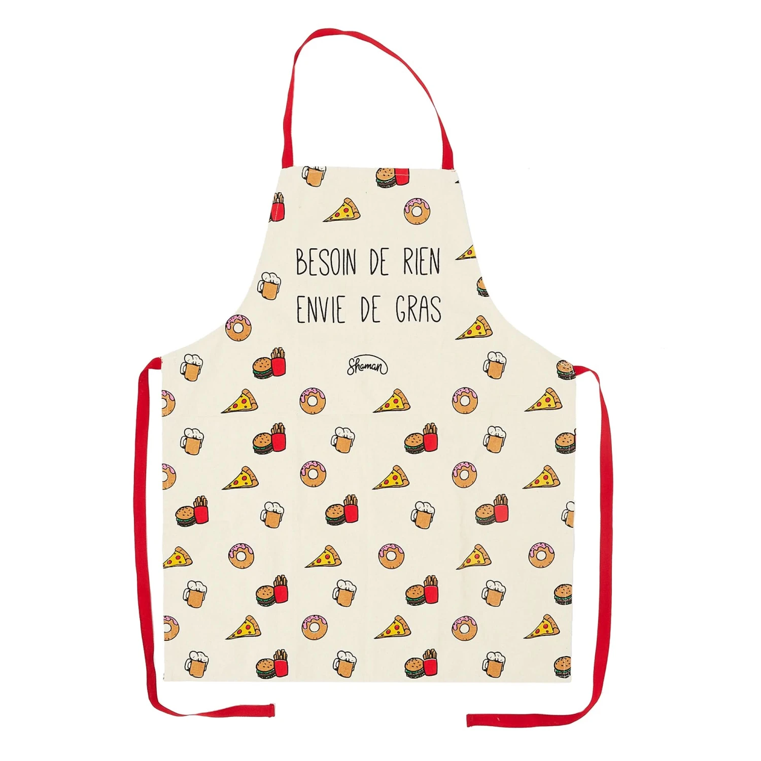 Le gras, c’est la vie, on le sait, on l’assume et on le dit. On mise tout sur le goût et on oublie les calories ! Avec ce set tablier et gant de cuisine besoin de rien envie de gras, on laisse s’exprimer ses envies de plats décadents et on décomplexe enfin en cuisinant ! Alors, team burger ou team pizza ?