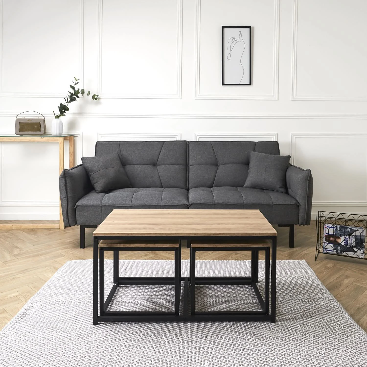 Pour les adeptes des grands apéros dinatoires entre amis, la triple table basse seattle est faite pour vous! Ce n’est pas 1, mais 3 tables basses pour y disposer tous vos petits fours. Si vous êtes en petit comité, rangez les 2 petites tables sous la grande, et le tour est joué! En bonus, son style industriel séduiera tout le monde. Lot de 3 tables basses